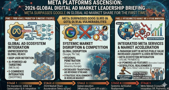 메타플랫폼스 가 올해 글로벌 디지털 광고 시장에서 구글 을 제치고 1위에 올라설 가능성이 높다는 전망이 제기되면서 광고 산업의 구조적 변화가 본격화되고 있다. 이는 단순한 순위 변화가 아니라 광고 생태계의 중심축이 이동하고 있음을 보여주는 중요한 신호로 해석된다.